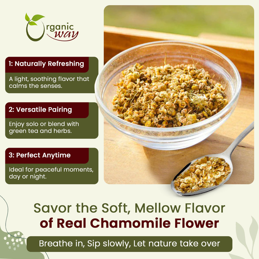 Indulge in the natural goodness of chamomile with our lab-tested and organically grown dried chamomile flowers in their whole form. Our dried chamomile flowers are carefully harvested and preserved to offer you a premium herbal experience. Chamomile (Matricaria chamomilla or Chamaemelum nobile) has been used for centuries as a soothing herb with potential health benefits. With our whole dried chamomile flowers, you can enjoy the pure and authentic essence of this delightful herb in its natural state.
