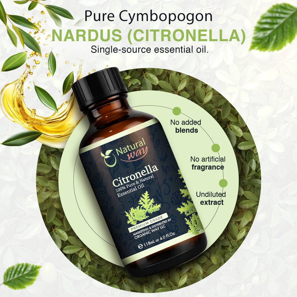 Citronella Essential Oil for Diffusers | Natural Aroma Oil for Home Fragrance, Humidifier & DIY Candle Making, Long Lasting Scent for Office, Bedroom & Soothing Scent 4 Fl Oz (120 mL)