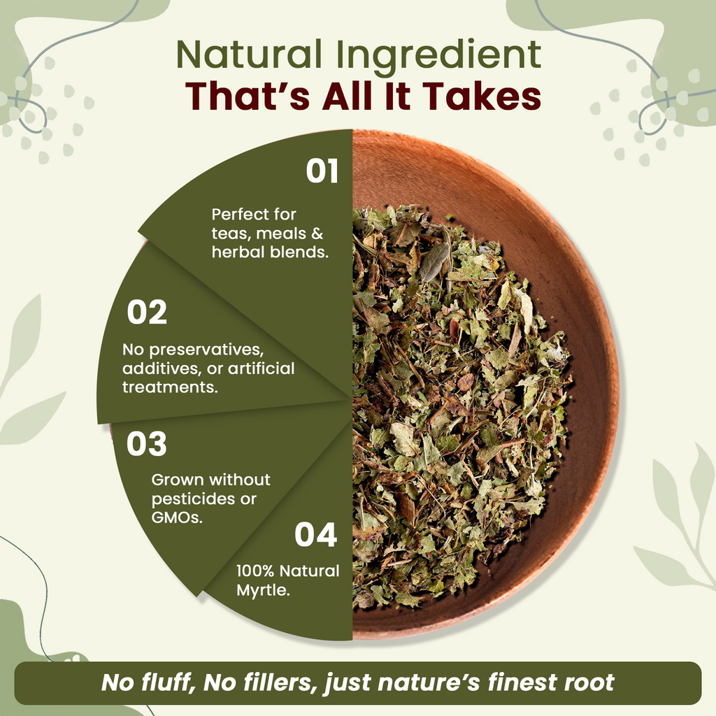 Myrtle leaf is commonly used in as tea to help with lung infections, diarrhea, worms, tuberculosis, etc. You can rely on our products for authenticity and potency. Organic Way imports quality organically grown products from different countries and processes them in the USA for the US market.
