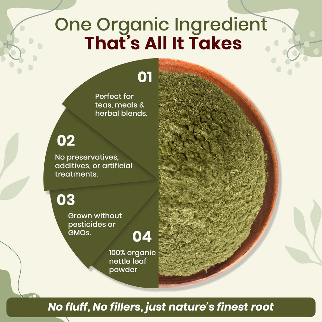 Nettle Leaf Powder (Urtica dioica) - Herbal Tea | Kosher Certified | Raw, Vegan, Non GMO & Gluten Free | USDA Certified | Origin - Albania