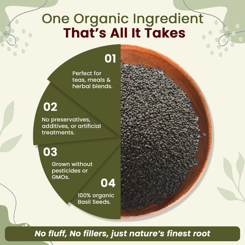 Discover the incredible taste of Organic Way Edible Basil Seeds, Our seeds are sustainably sourced from Albania ensuring you get the highest quality. Packed in a Resealable Bag, these seeds are a great addition to a healthy taste. When soaked in water, the seeds form a gelatinous coating, creating a unique texture perfect for various recipes. Two tablespoons of these organic seeds provide 15g of fiber, making them a nutritious addition to your daily diet. Add them to smoothies, oatmeal, yogurt, salads, sauces, soups, and jams.
