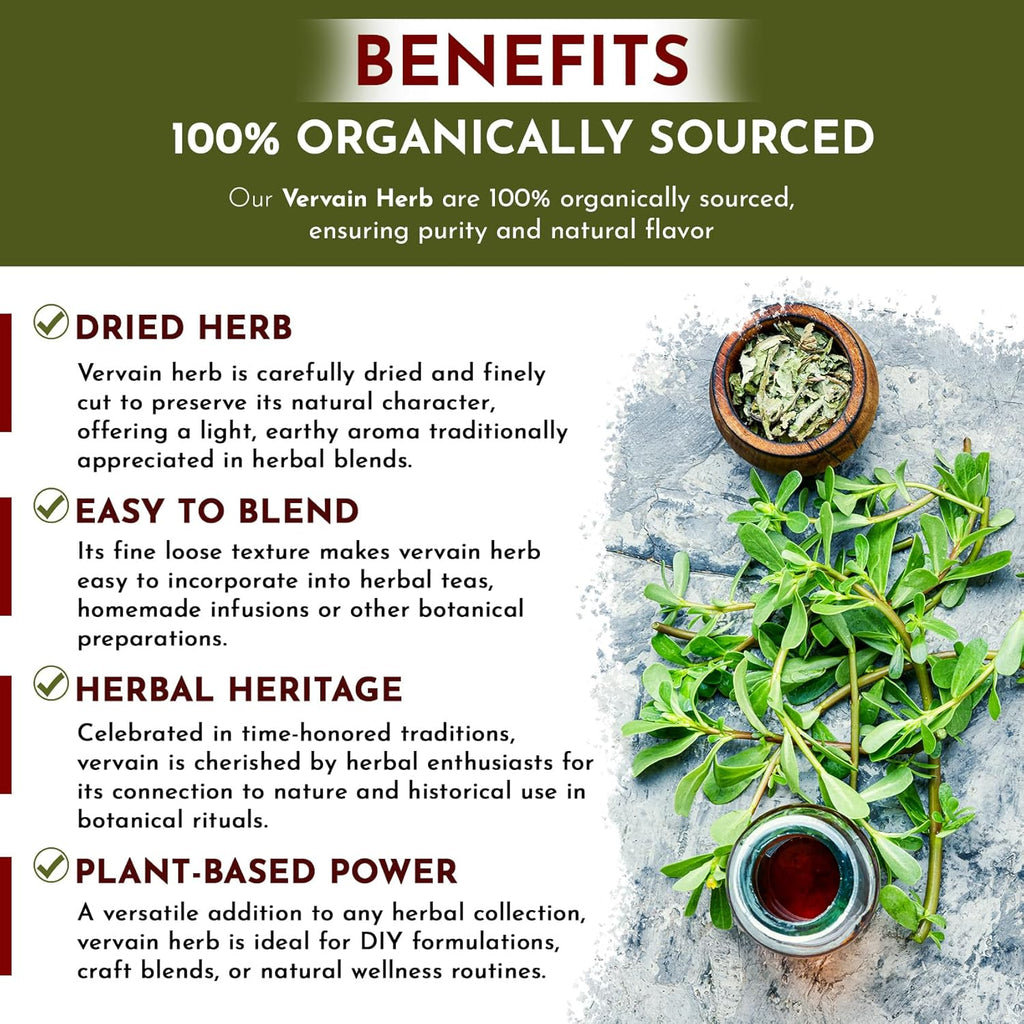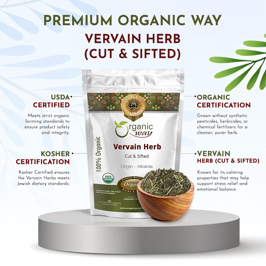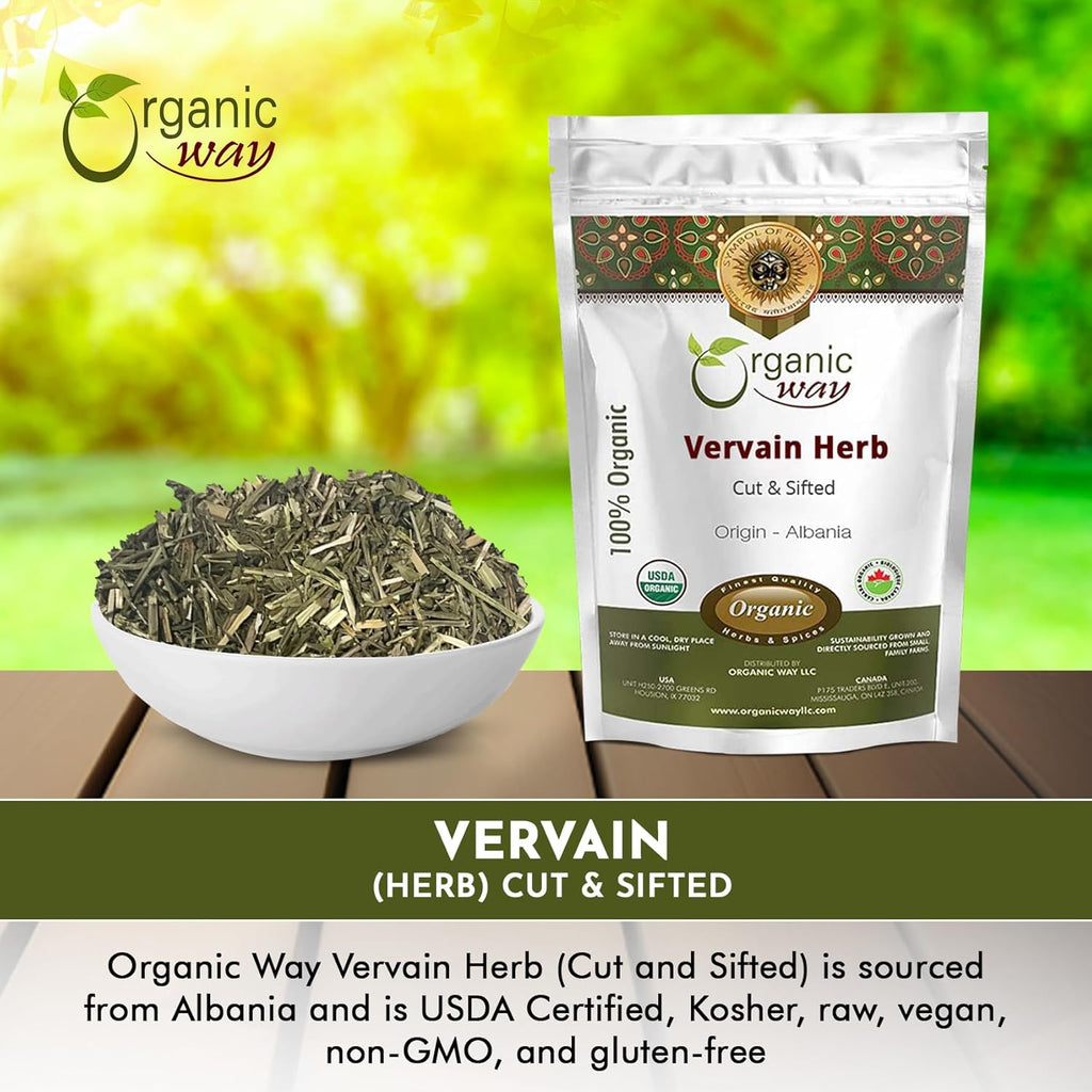 Organic Way Vervain Herb (Verbena officinalis) Cut and sifted | Herbal Tea | Non-GMO & Gluten Free | Resealable Bag | Raw from Albania